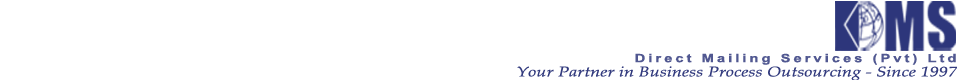 Our firm, Direct Mailing Services (Pvt) Ltd. (DMSPL), was incorporated as a partnership and registered under the Business Names Ordinance in September 1997, to handle the bulk mailing of Letters, Monthly Statements, Annual Reports, Quarterly and Half yearly Statements and Promotional Brochures etc., both locally and overseas.